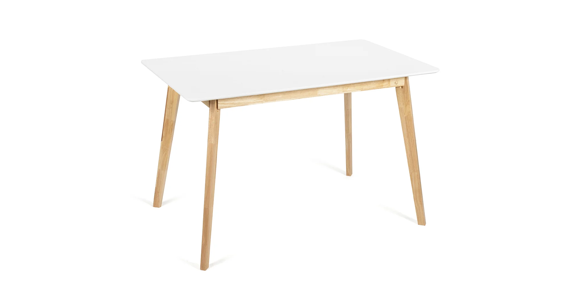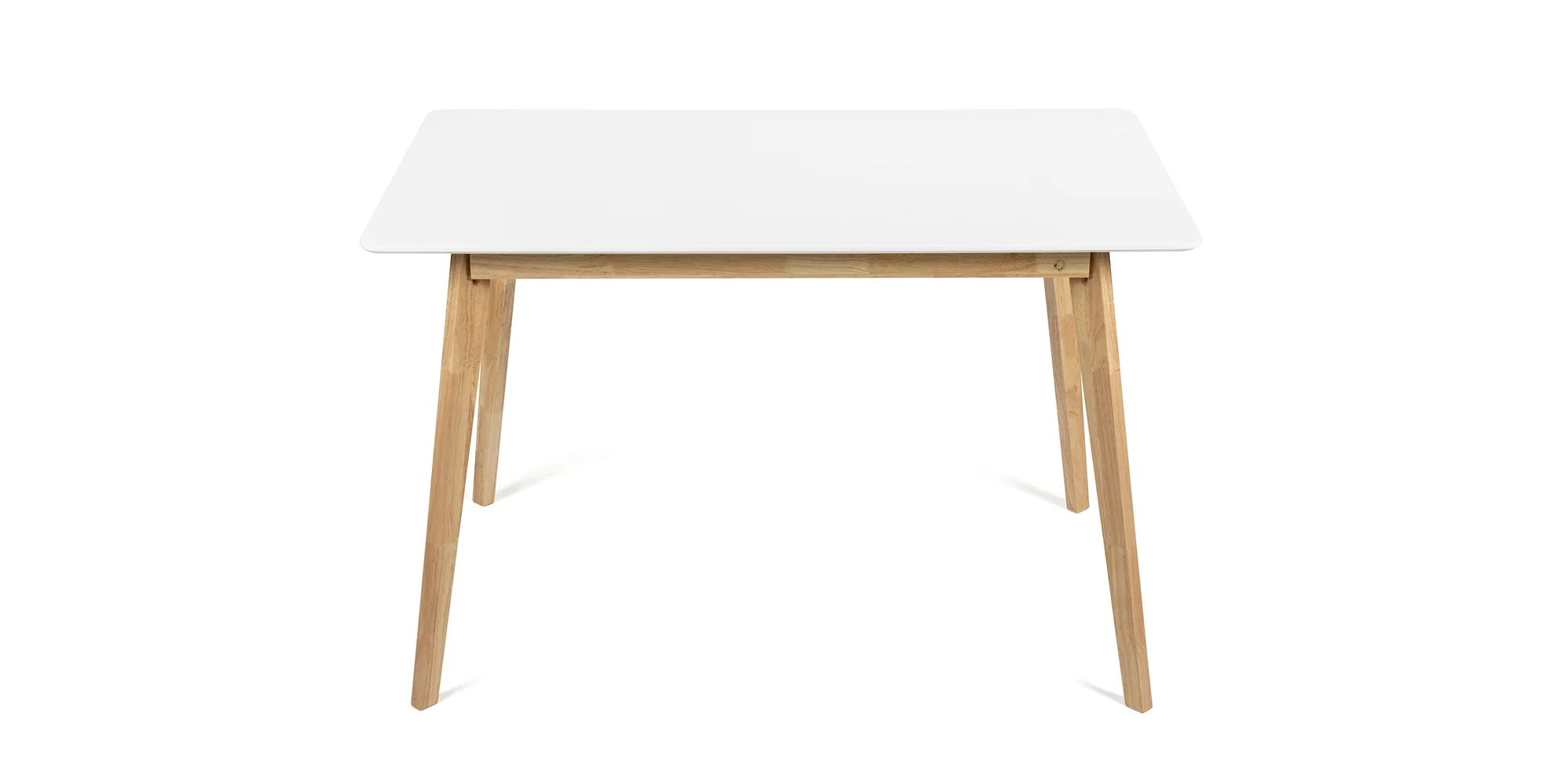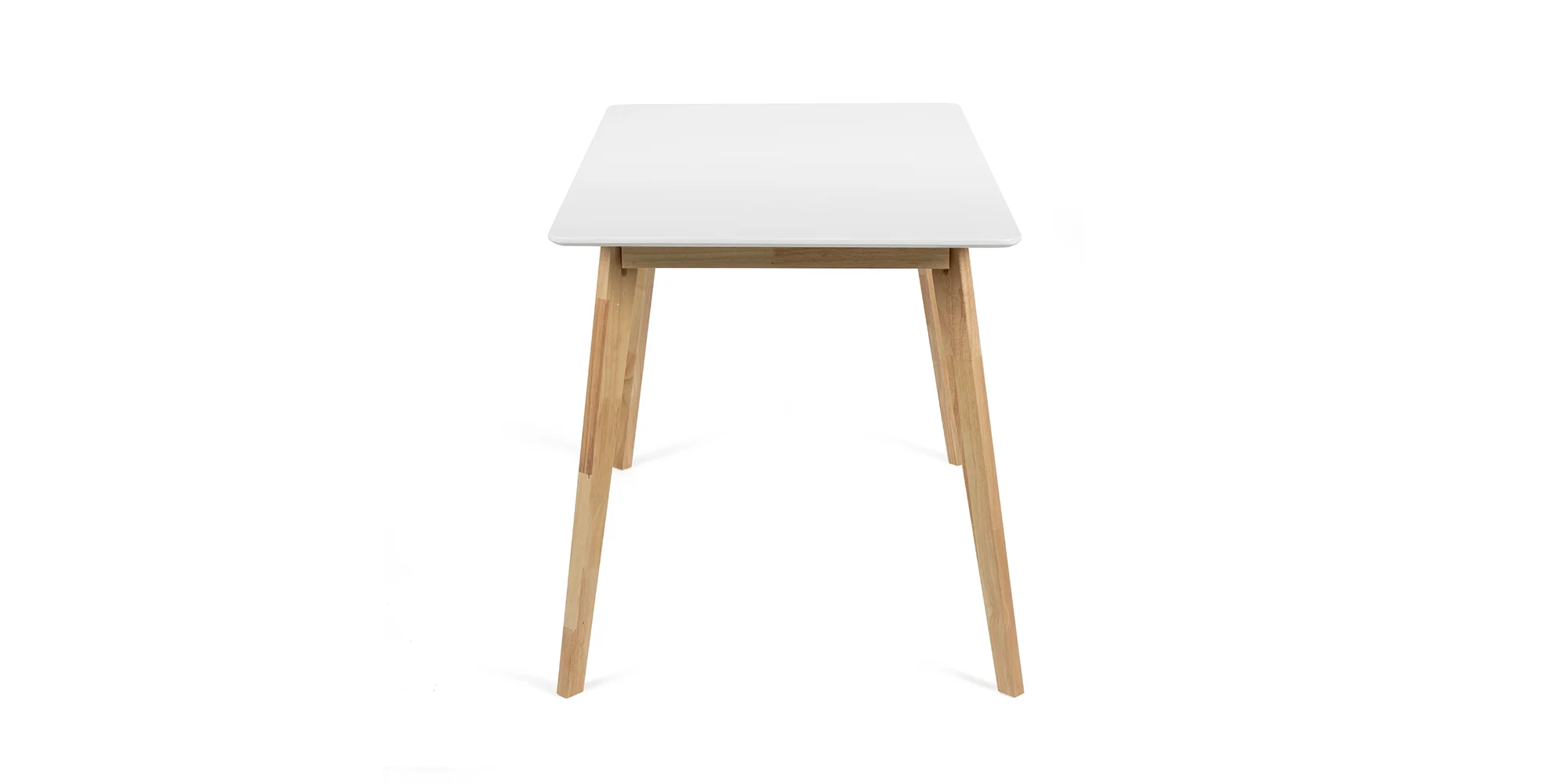 Dominantou setu je elegantní stůl s bílou deskou a stabilními dřevěnými nohami, který působí lehce a nadčasově. Díky svým proporcím nabízí dostatek prostoru pro pohodlné stolování i každodenní využití.
