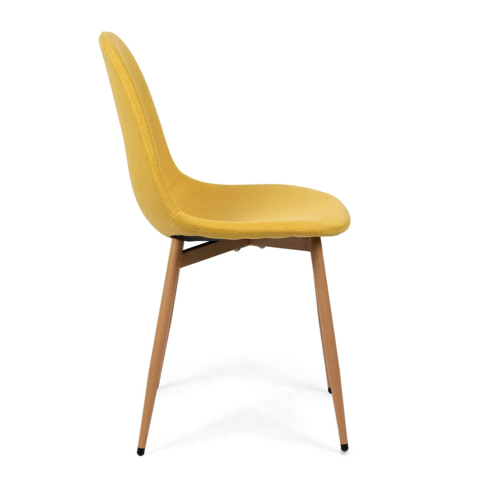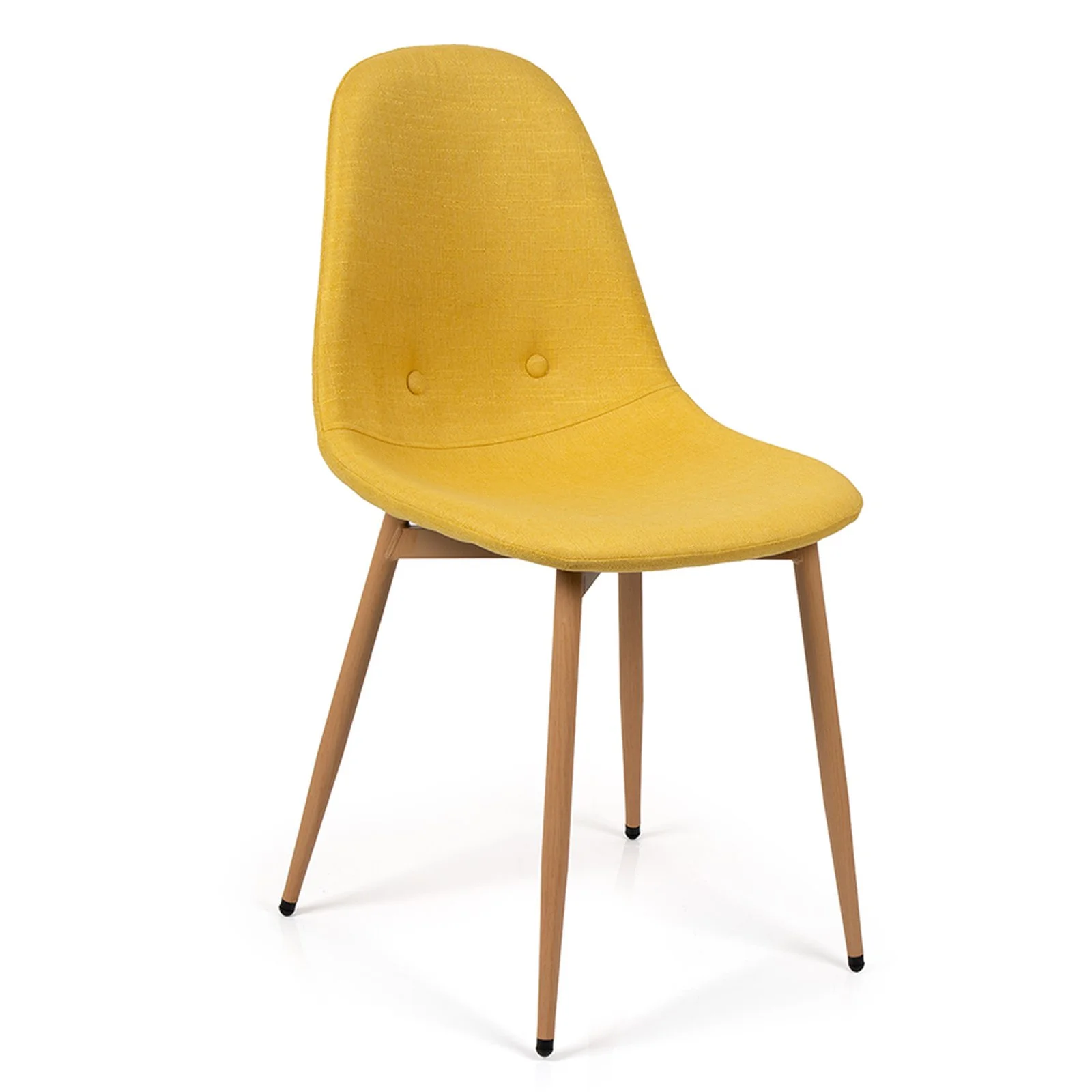 Čtyři čalouněné židle v teplém žlutém odstínu přinášejí nejen vizuální kontrast, ale také vysoký komfort při sezení. Ergonomicky tvarované opěradlo a příjemný materiál zajišťují pohodlí i při delším posezení.