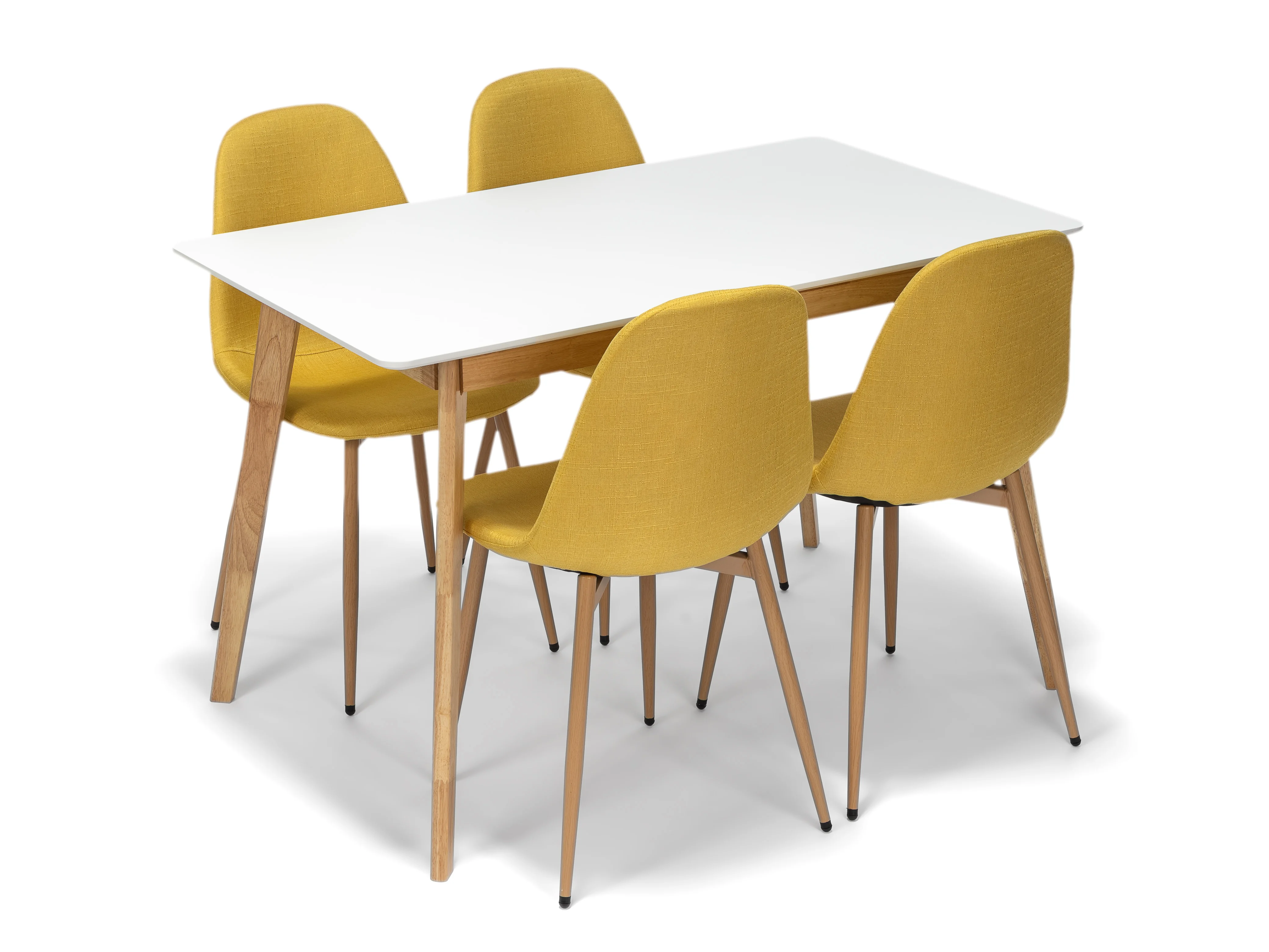 Dodejte své jídelně energii a osobitý styl. Tento moderní jídelní set v sobě spojuje čistý skandinávský design s výrazným barevným akcentem, díky kterému se stane nepřehlédnutelným prvkem vašeho interiéru.