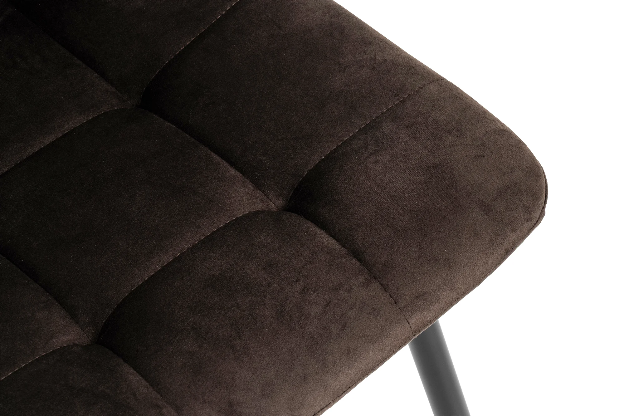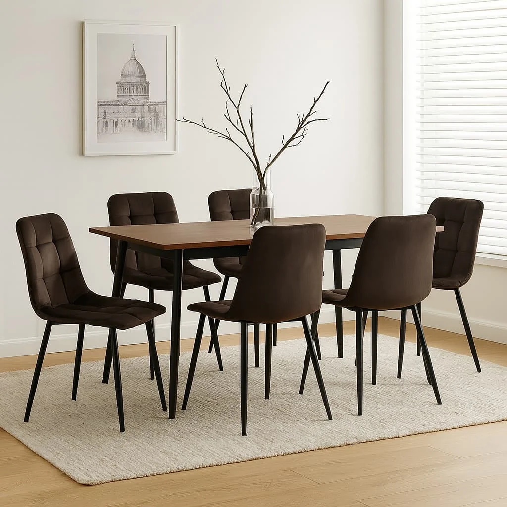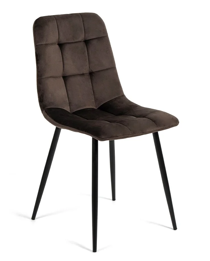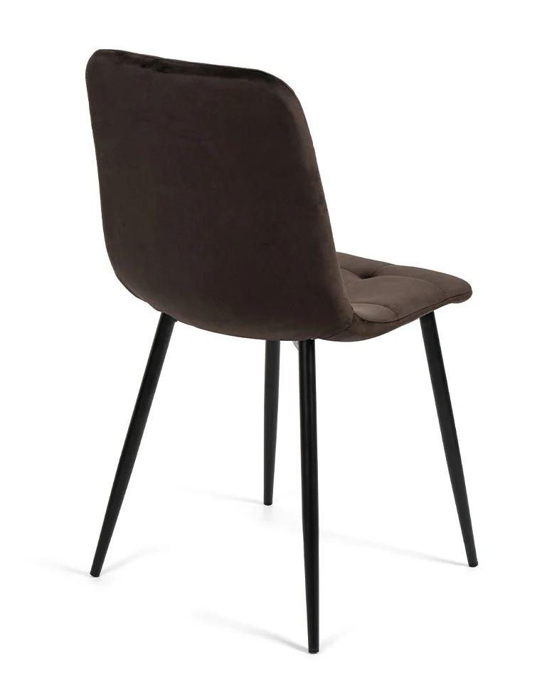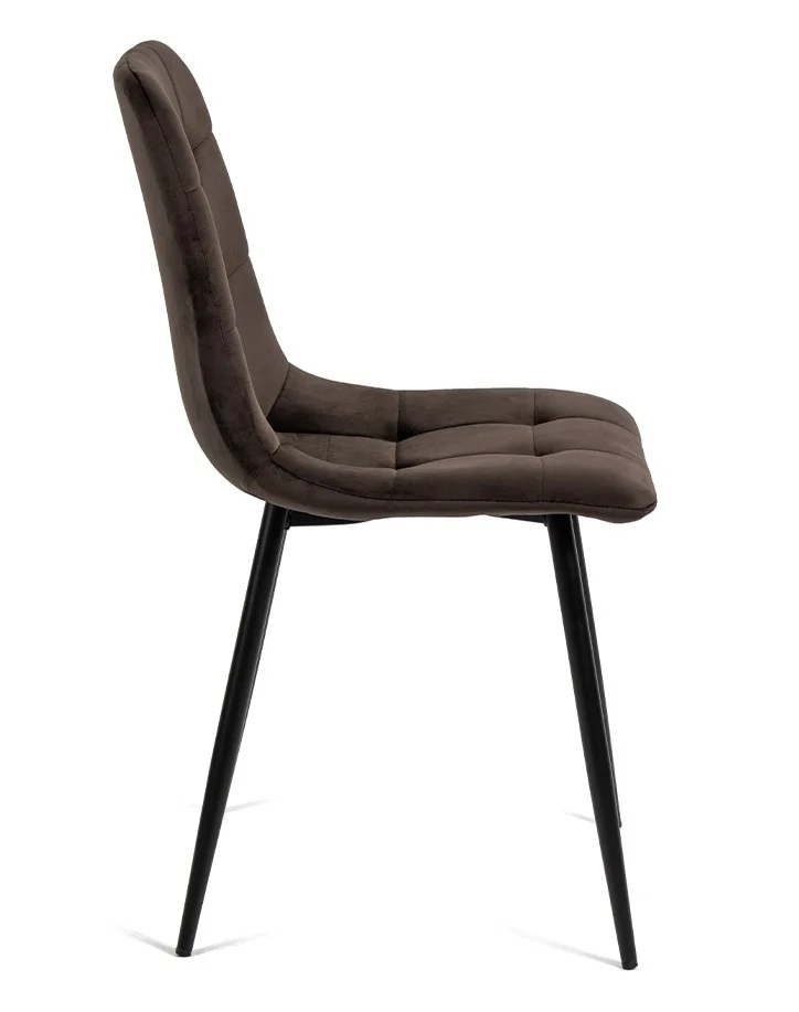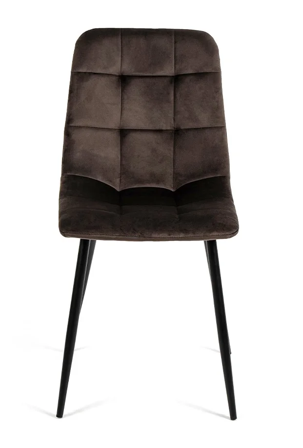 Elegantní židle s nadčasovým designem. Pohodlné čalounění v hnědém sametovém provedení s prošíváním. Stabilní kovové nohy v černé barvě. Vhodná do jídelny, obývacího pokoje i pracovny. Spojení komfortu, stylu a odolnosti.