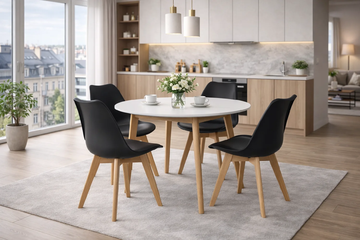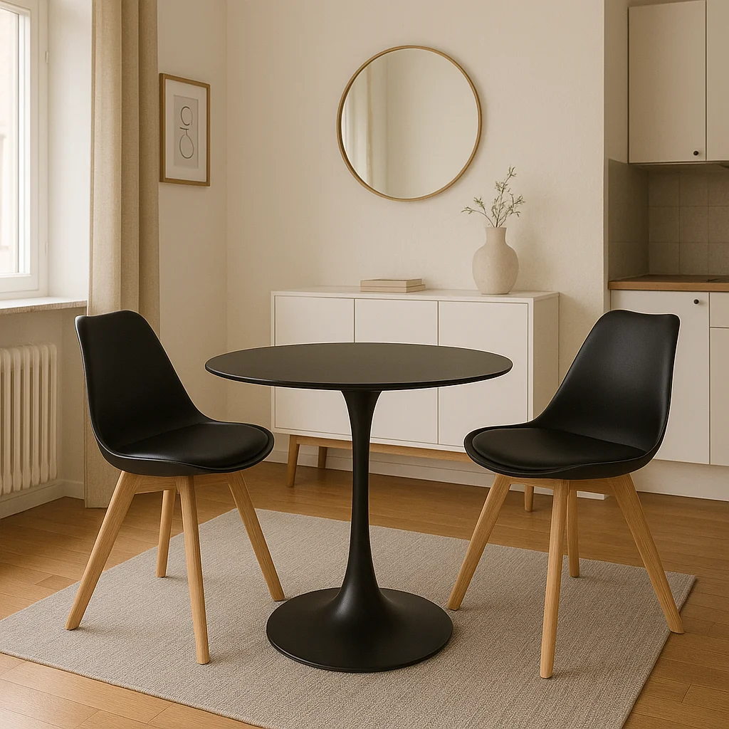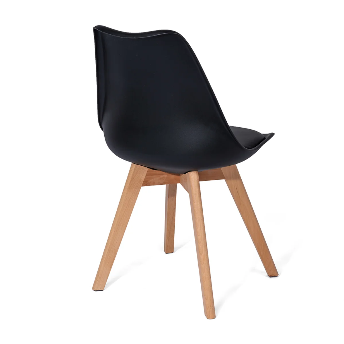 Stylová židle s moderním skandinávským designem. Černé plastové sedátko s pohodlným polstrováním. Masivní dřevěné nohy zajišťující stabilitu a přírodní vzhled. Vhodná do jídelny, kuchyně i pracovny. Kombinace jednoduchosti, komfortu a elegance.