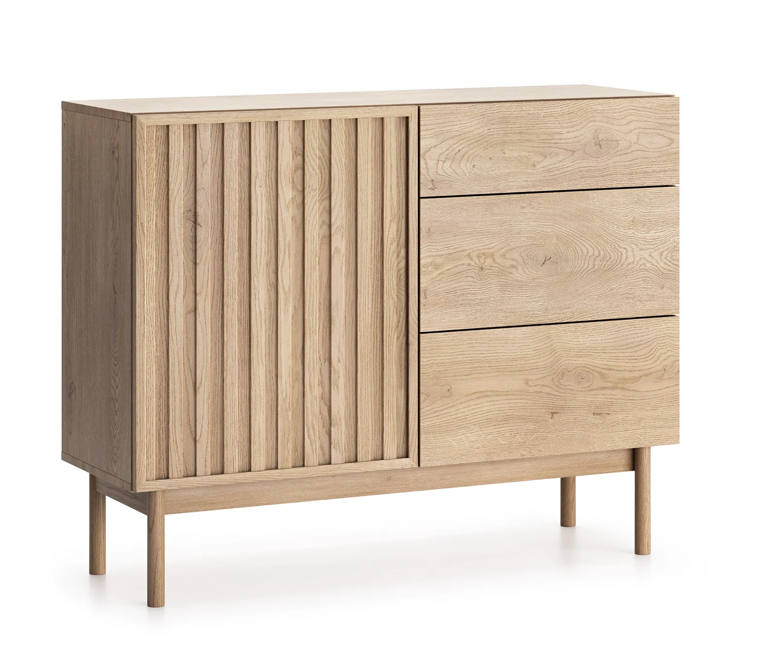 Kolekce stojí na vysokých dřevěných nožkách,