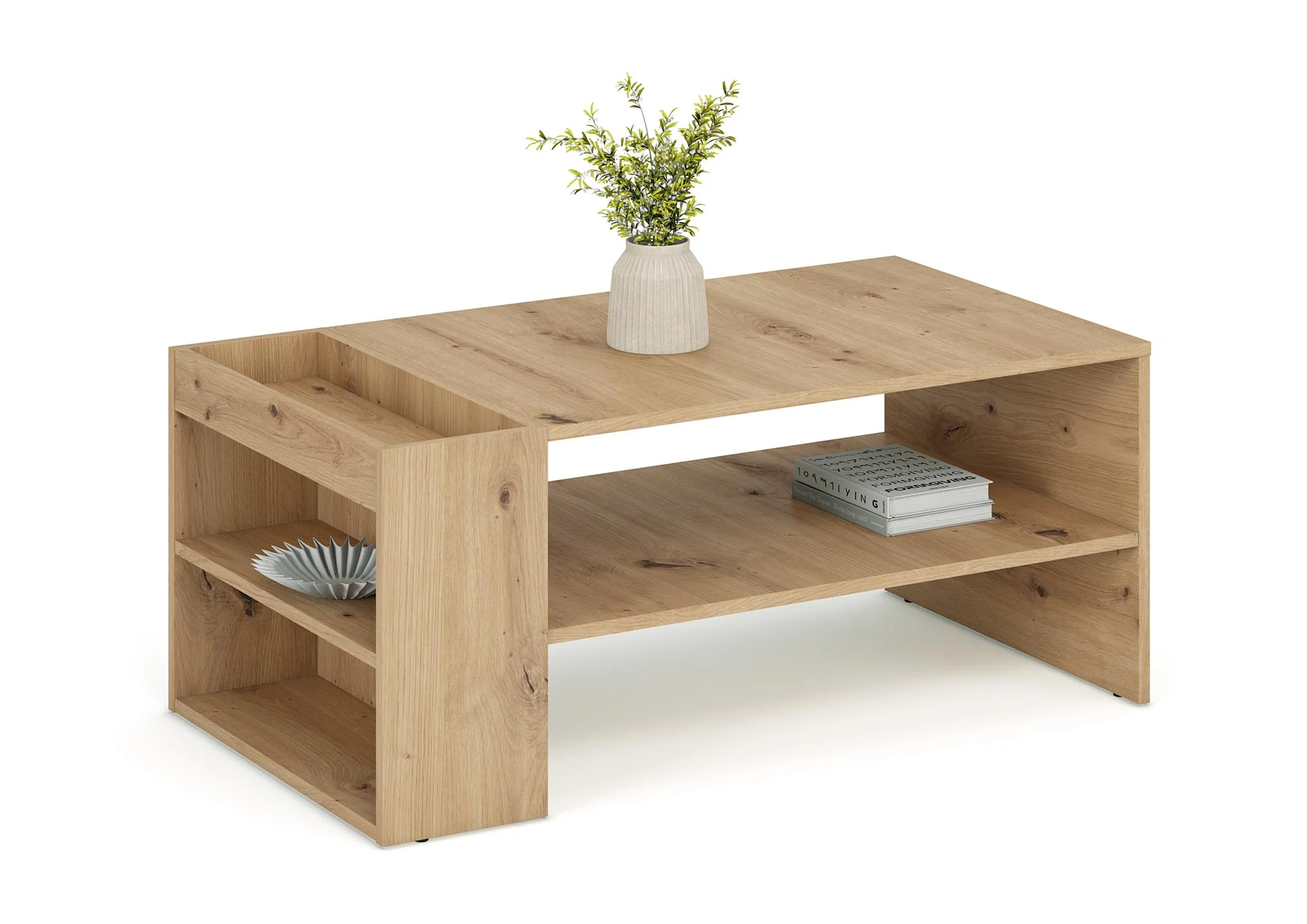 Konferenčný stolík MURCIA je dôkazom toho, že aj nábytok v obývačke môže byť multifunkčný bez toho, aby stratil na elegancii. Tento model v celodrevenom dekore (imitácia duba s výraznou kresbou) je navrhnutý špeciálne pre tých, ktorí chcú mať vo svojich veciach systém a poriadok.