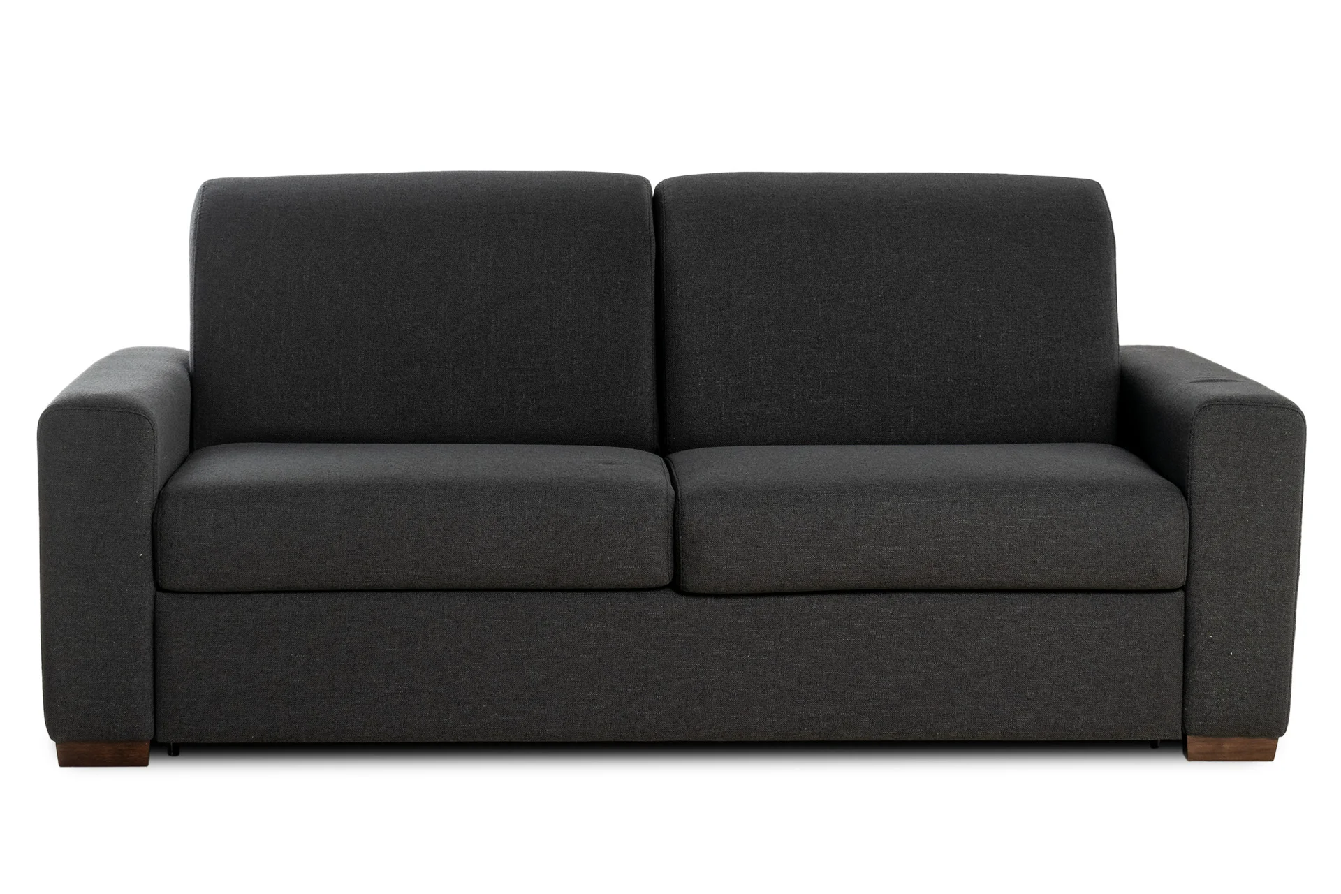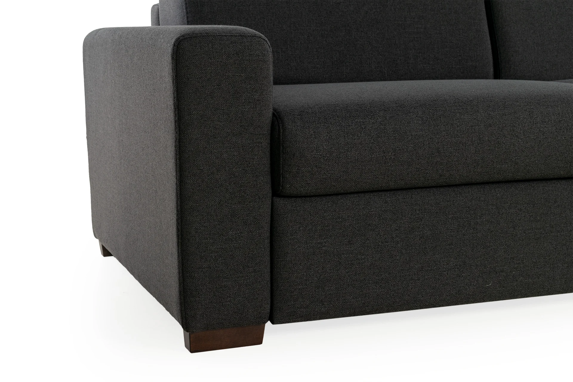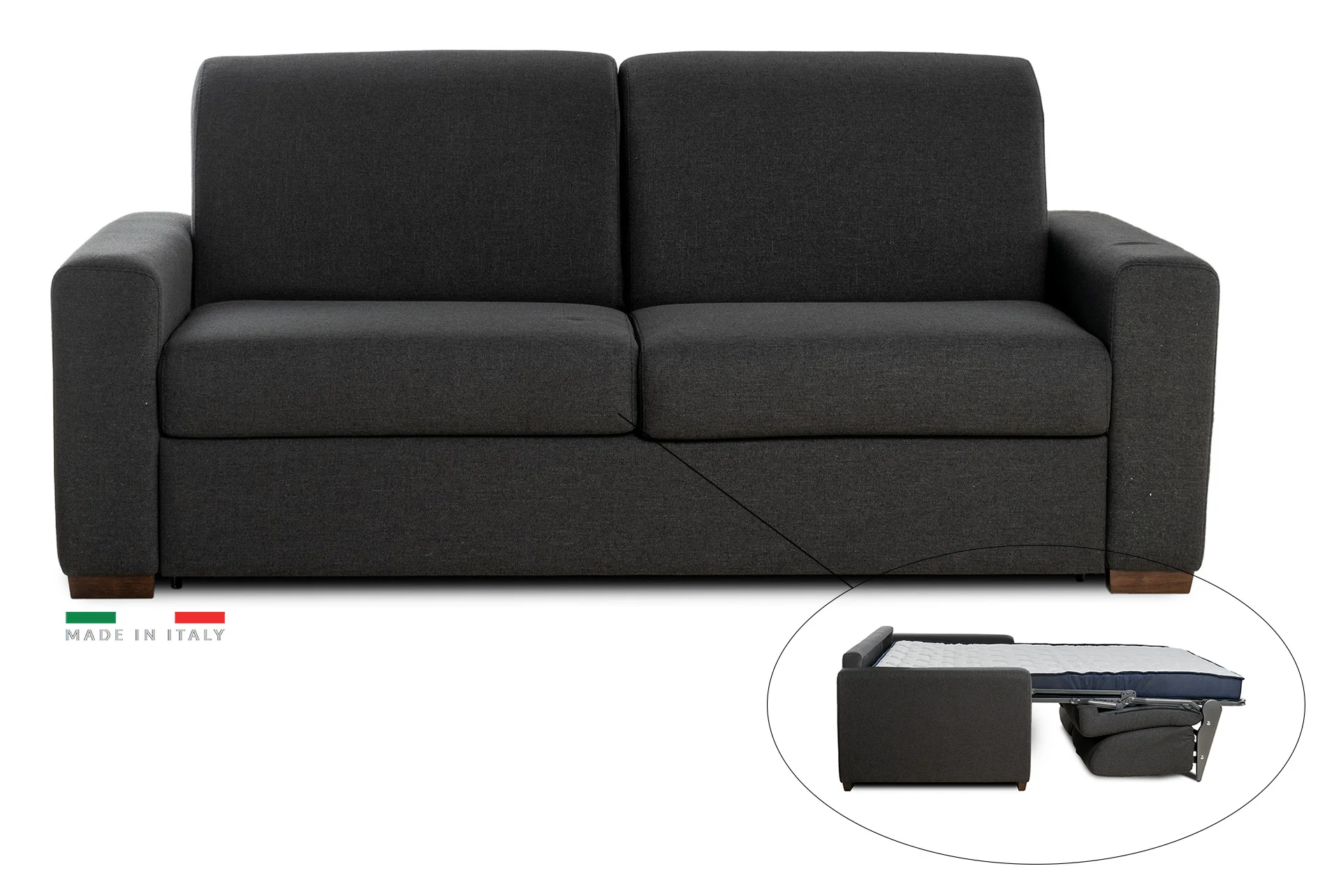 rozkladacia pohovka na každodenné spanie, pohovka 140 cm, matrac 14 cm, tmavosivá pohovka JAZZ 22 Graphite, talianska výroba, moderná pohovka s drevenými nožičkami, koža Spessorata, kompaktné rozmery, pohovka do malého bytu.