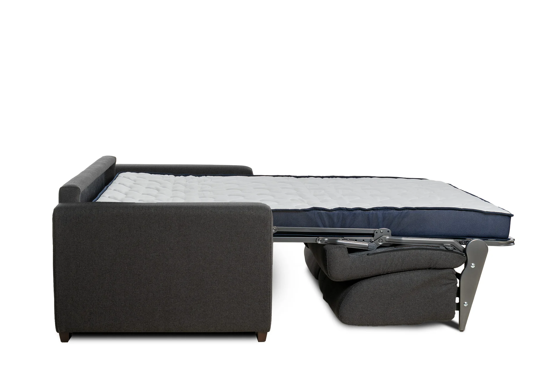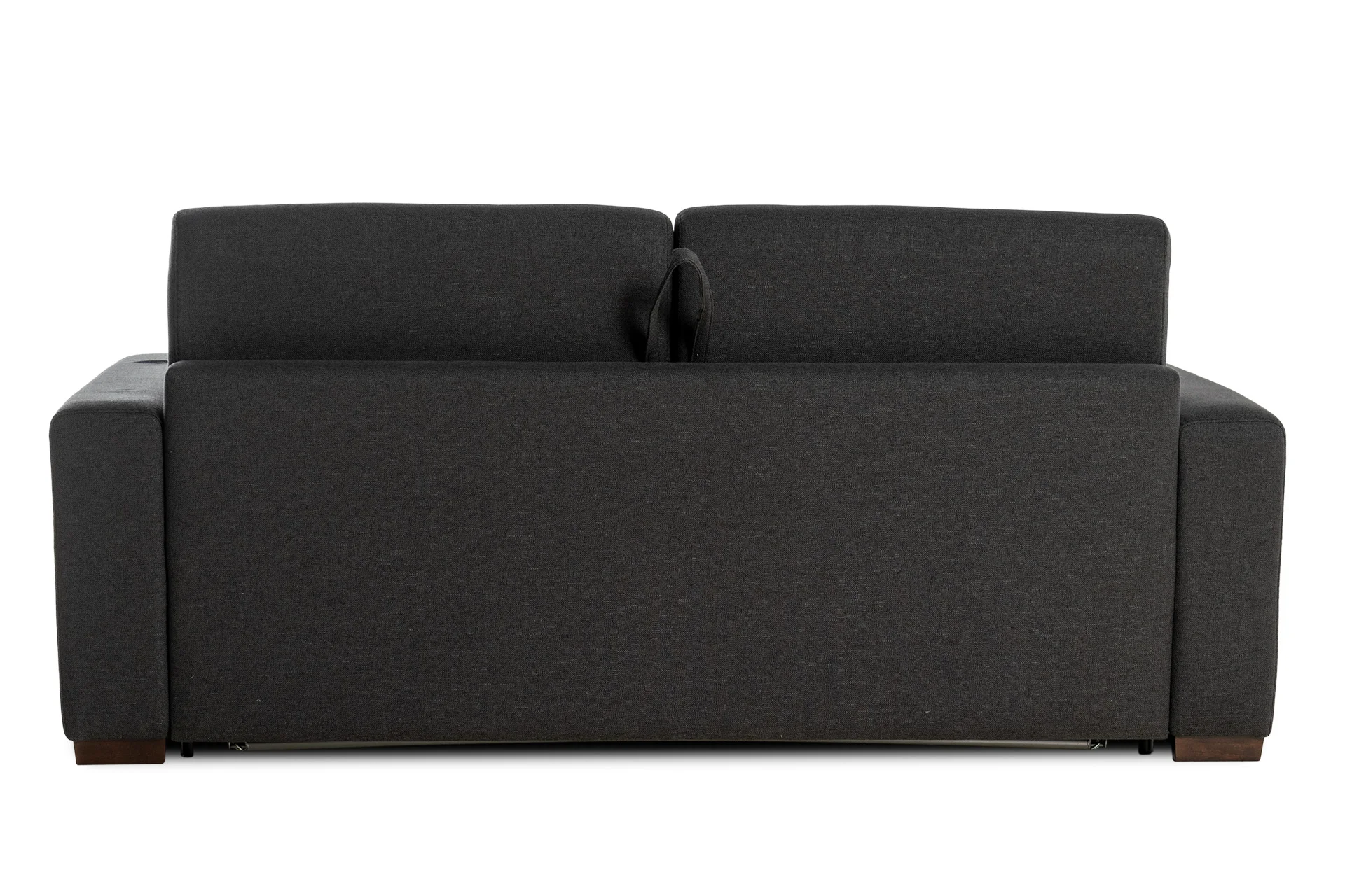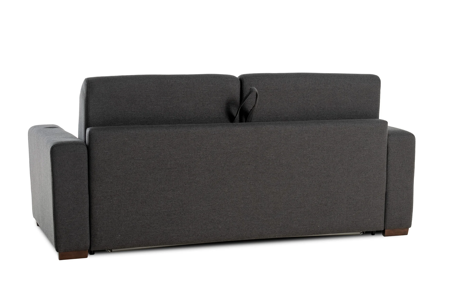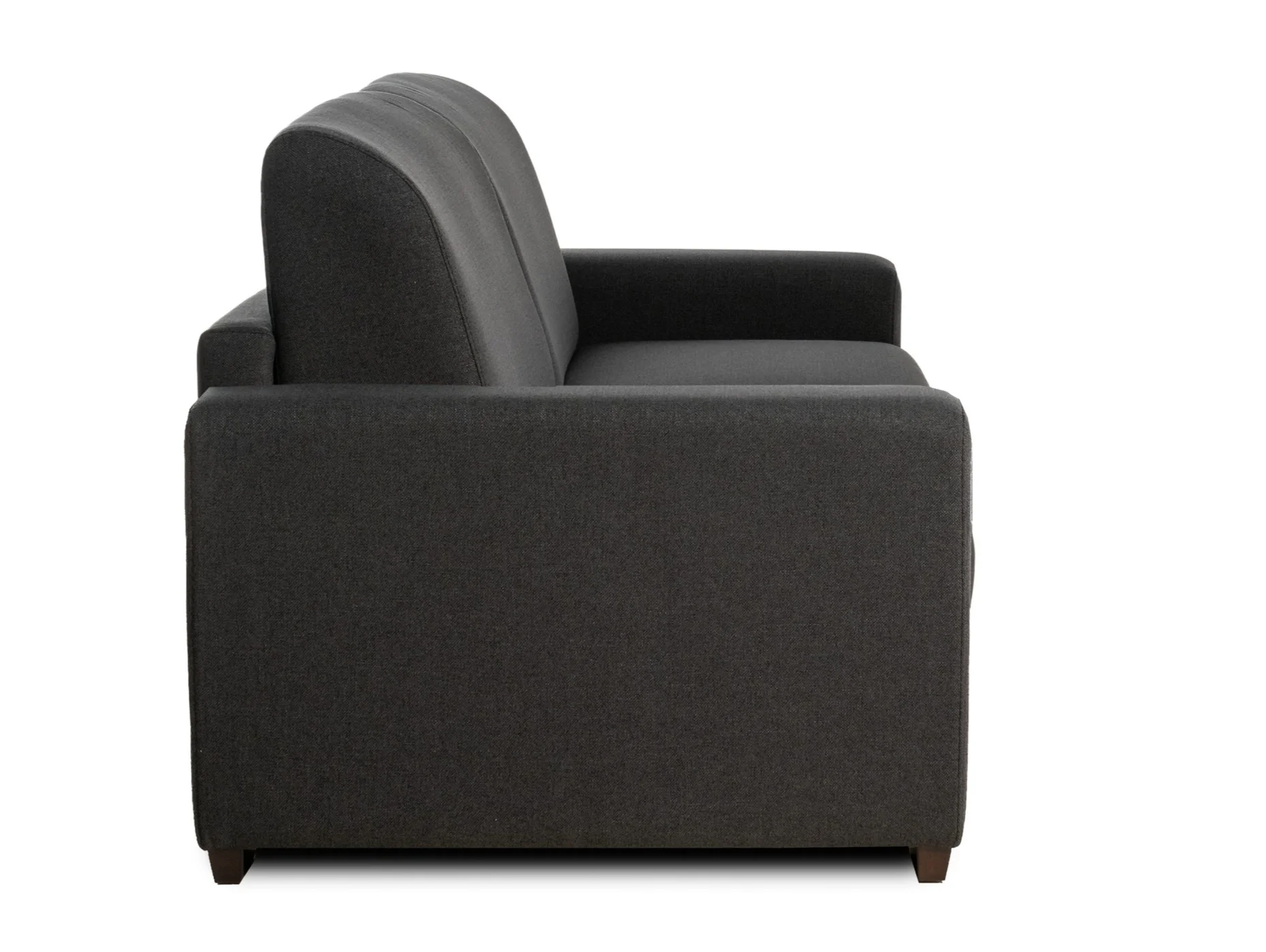 rozkladacia pohovka na každodenné spanie, pohovka 140 cm, matrac 14 cm, tmavosivá pohovka JAZZ 22 Graphite, talianska výroba, moderná pohovka s drevenými nožičkami, koža Spessorata, kompaktné rozmery, pohovka do malého bytu.