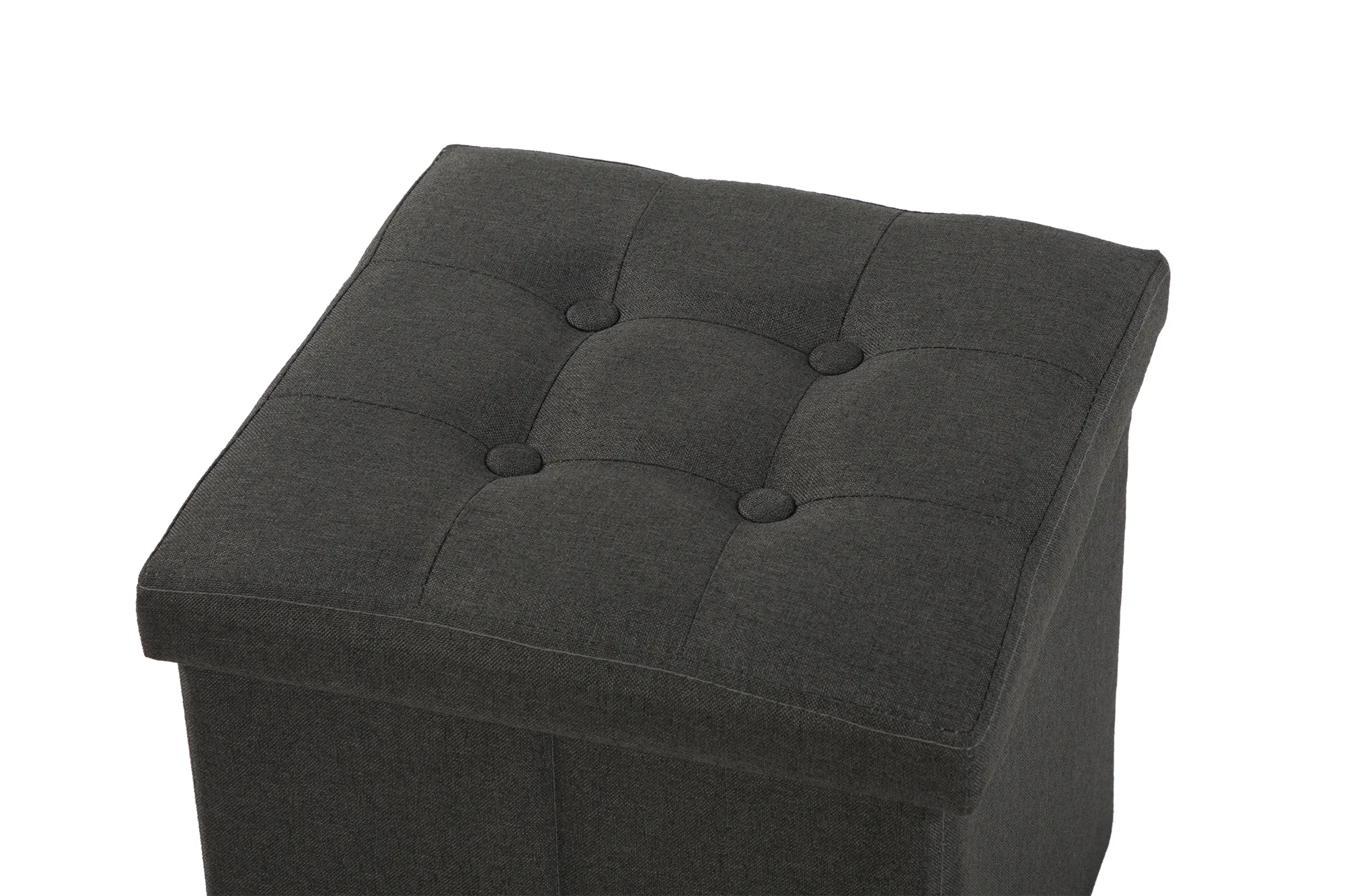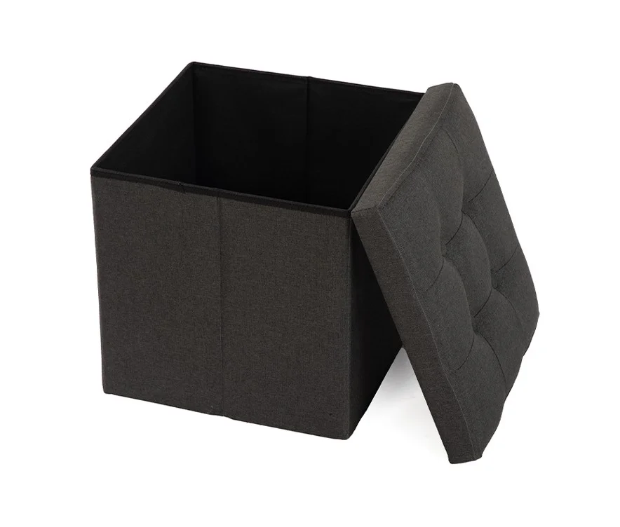 Praktická a elegantní taburetka s funkcí úložného prostoru. Vyrobena z odolné MDF konstrukce potažené kvalitní textilií v tmavě šedé barvě. Víko je čalouněné s jemným prošíváním, které dodává taburetce moderní vzhled. Díky skládacímu provedení lze úložný box snadno složit a uschovat, když není používán.