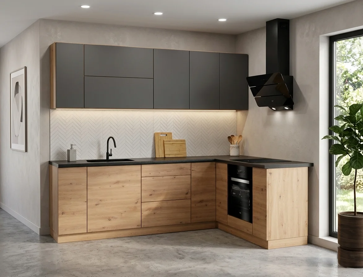 Rohová konfigurácia umožňuje efektívne využitie priestoru aj v kompaktných kuchyniach.