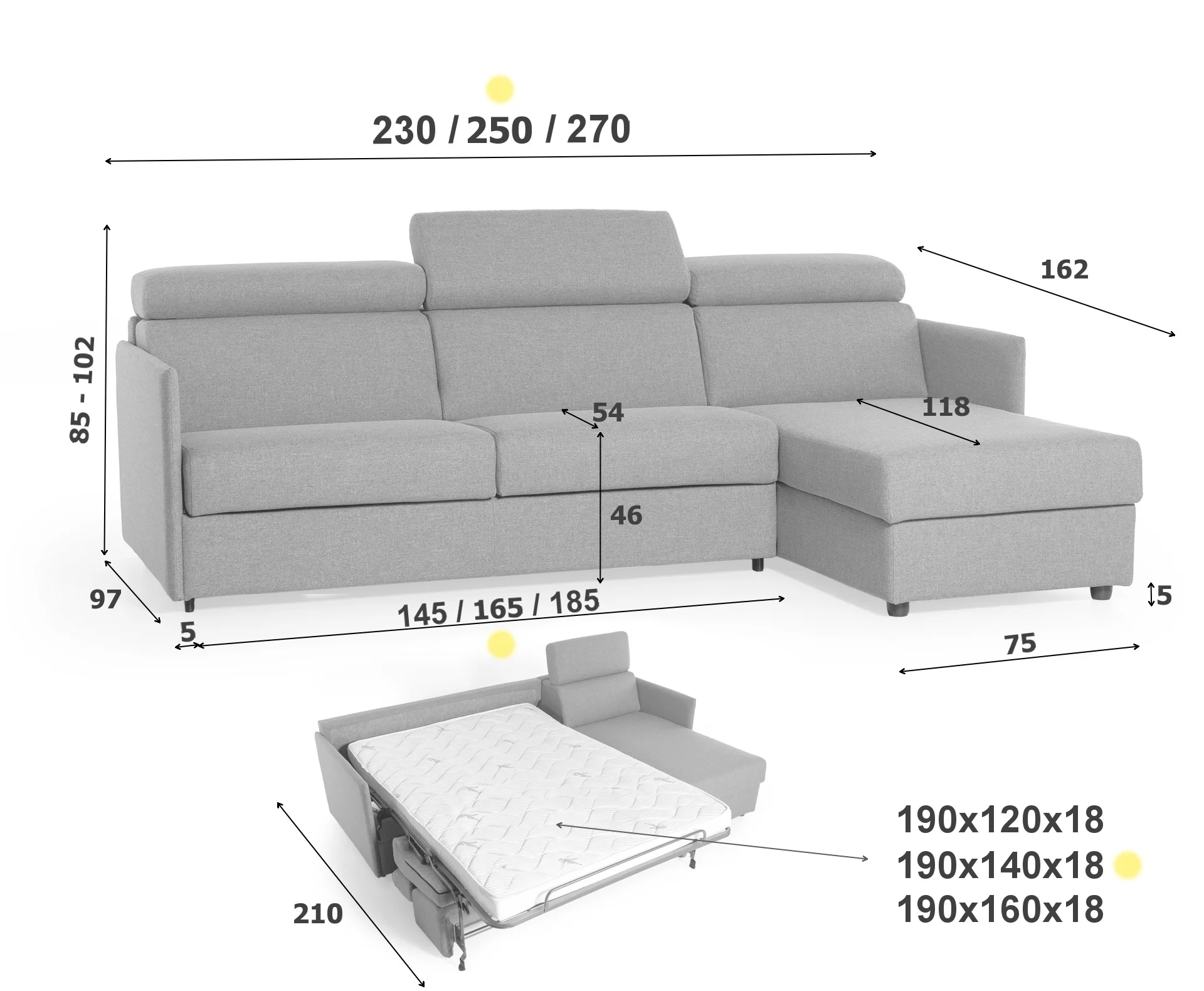 | Hĺbka | 162 / 97 - 210 cm |