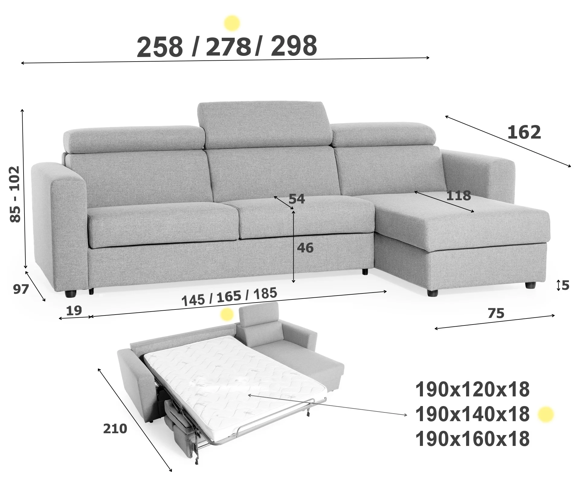 | Hĺbka | 162 / 97 - 210 cm |