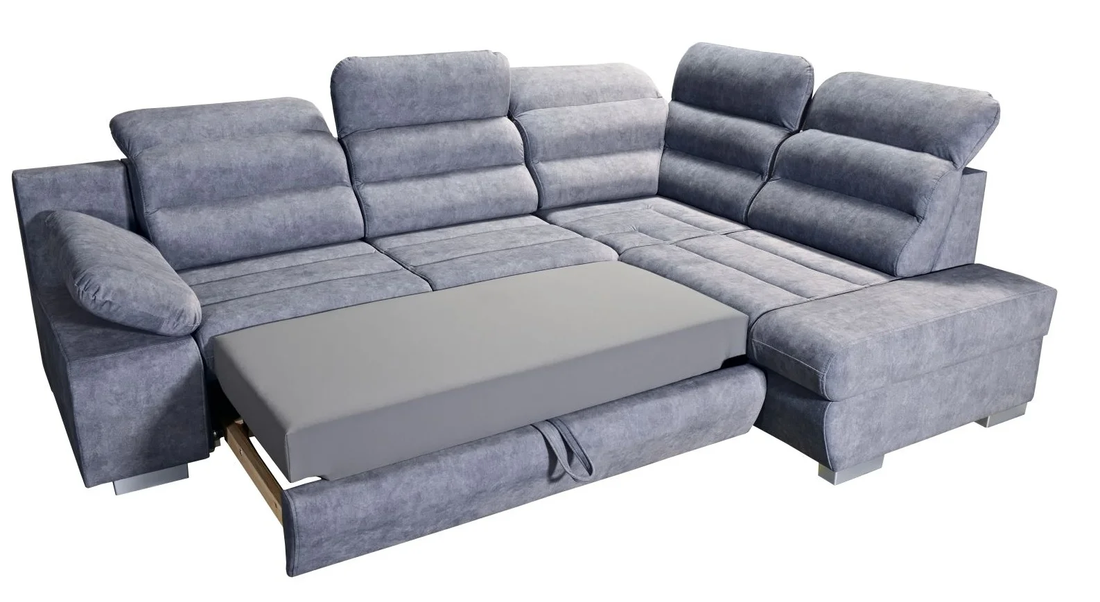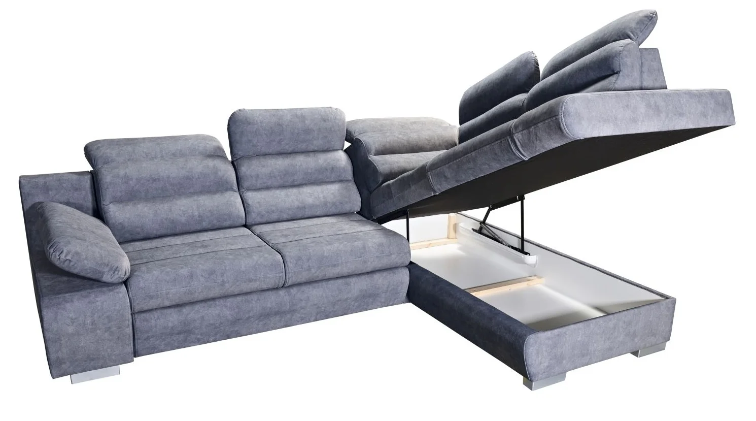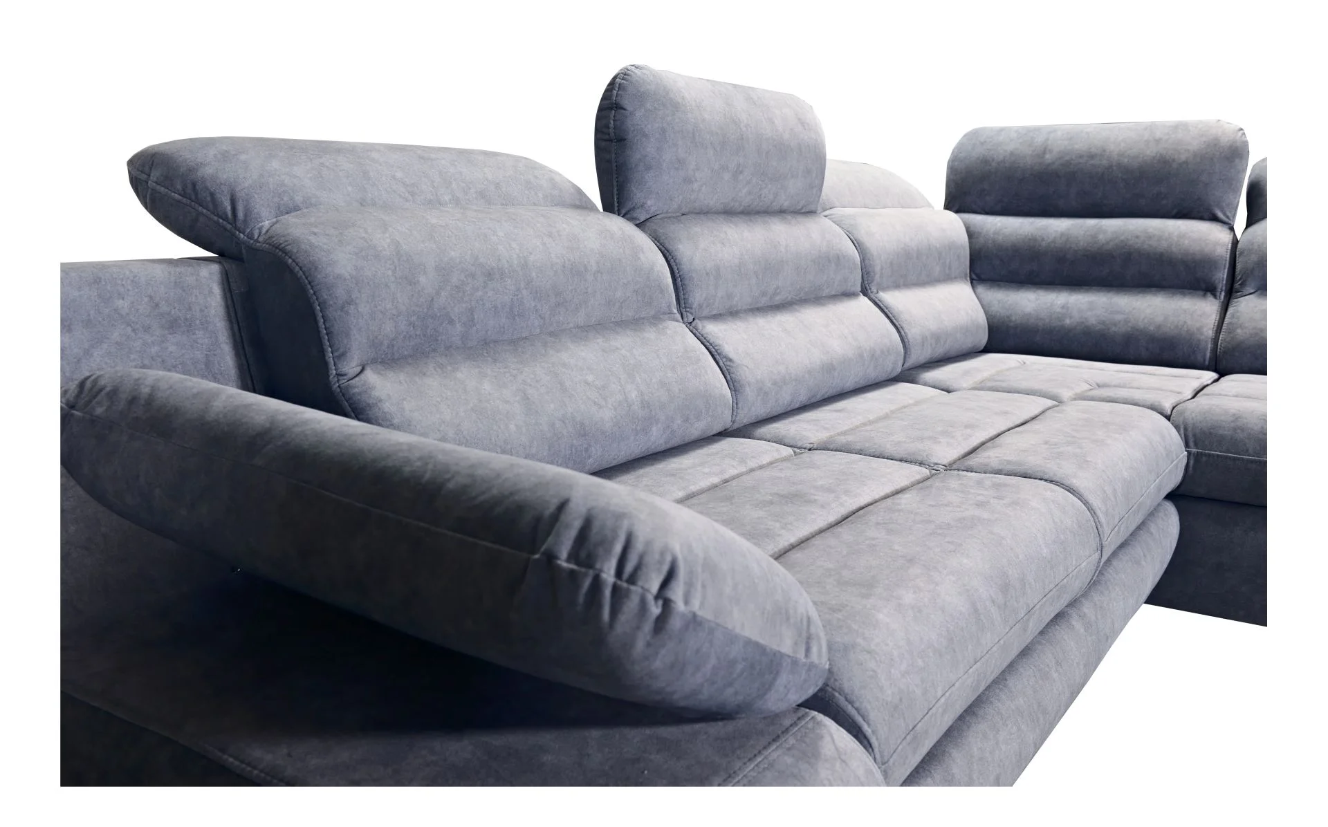 Reprezentatívny vzhľad a praktické funkcie, ktoré možno ľahko prispôsobiť vašim aktuálnym potrebám, sú najväčšími prednosťami tejto sedačky. Vďaka polohovateľným opierkam hlavy sa budete cítiť uvoľnene a dokonale oddýchnutí. Na sedačke môžete v pokoji odpočívať, usadiť svojich priateľov a v prípade potreby ju využiť na príležitostné prenocovanie. Pohovku môžete v okamihu premeniť na príležitostné lôžko. V úložnom priestore si môžete uložiť posteľnú bielizeň, ktorú budete mať vždy po ruke. Celočalúnená konštrukcia vám dáva možnosť umiestniť pohovku k stene alebo do priestoru.
