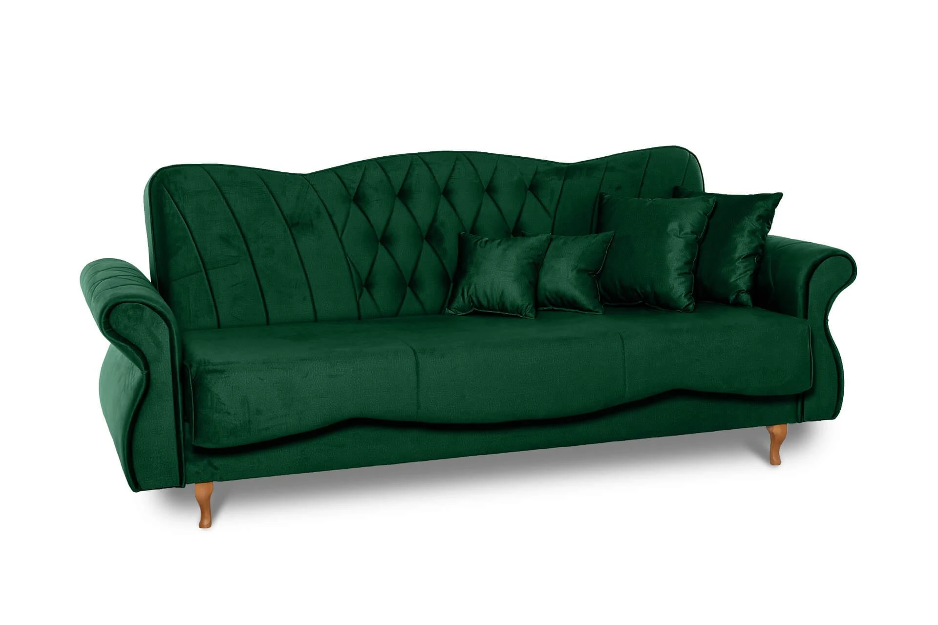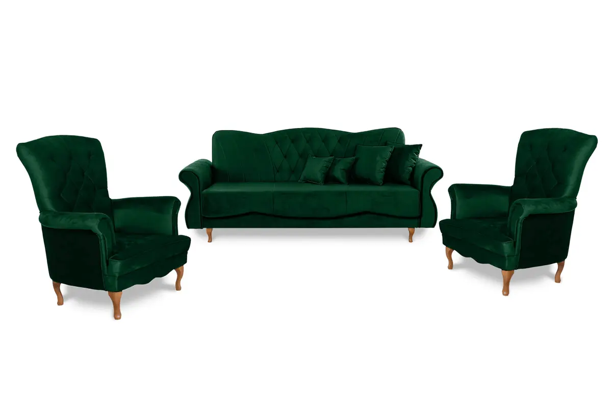 Panama nie je len obyčajná sedačka, ale dominantný kus nábytku, ktorý okamžite pritiahne pozornosť. Zdobené tvary, výrazné operadlá a drevené nohy vytvárajú harmonický celok, ktorý pôsobí honosne a zároveň útulne.