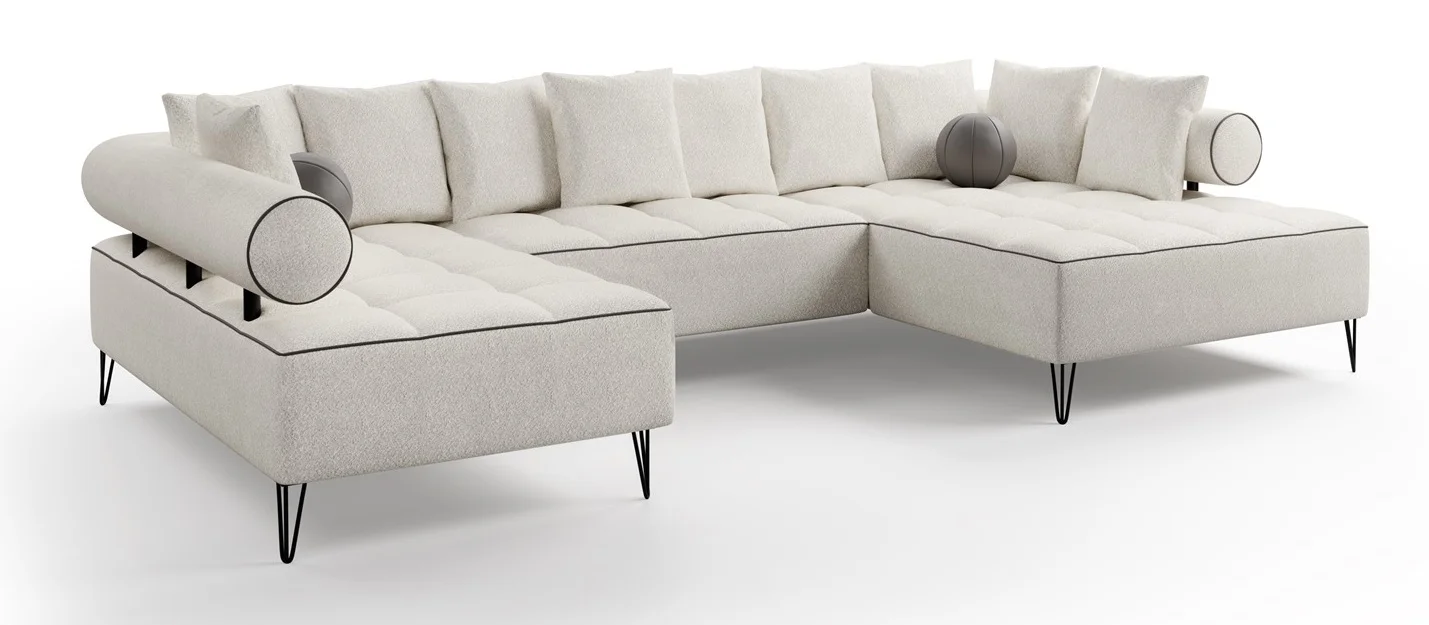 Moderní a elegantní design to je sedací souprava Vivienne, která klade důraz na maximální pohodlí. Sedačka má ozdobné prošívání a její předností jsou designové polštáře a kovové ozdobné nohy. Celoučalouněný design umožňuje umístění soupravy jak do rohu, tak i do středu místnosti.