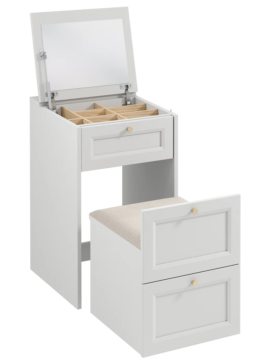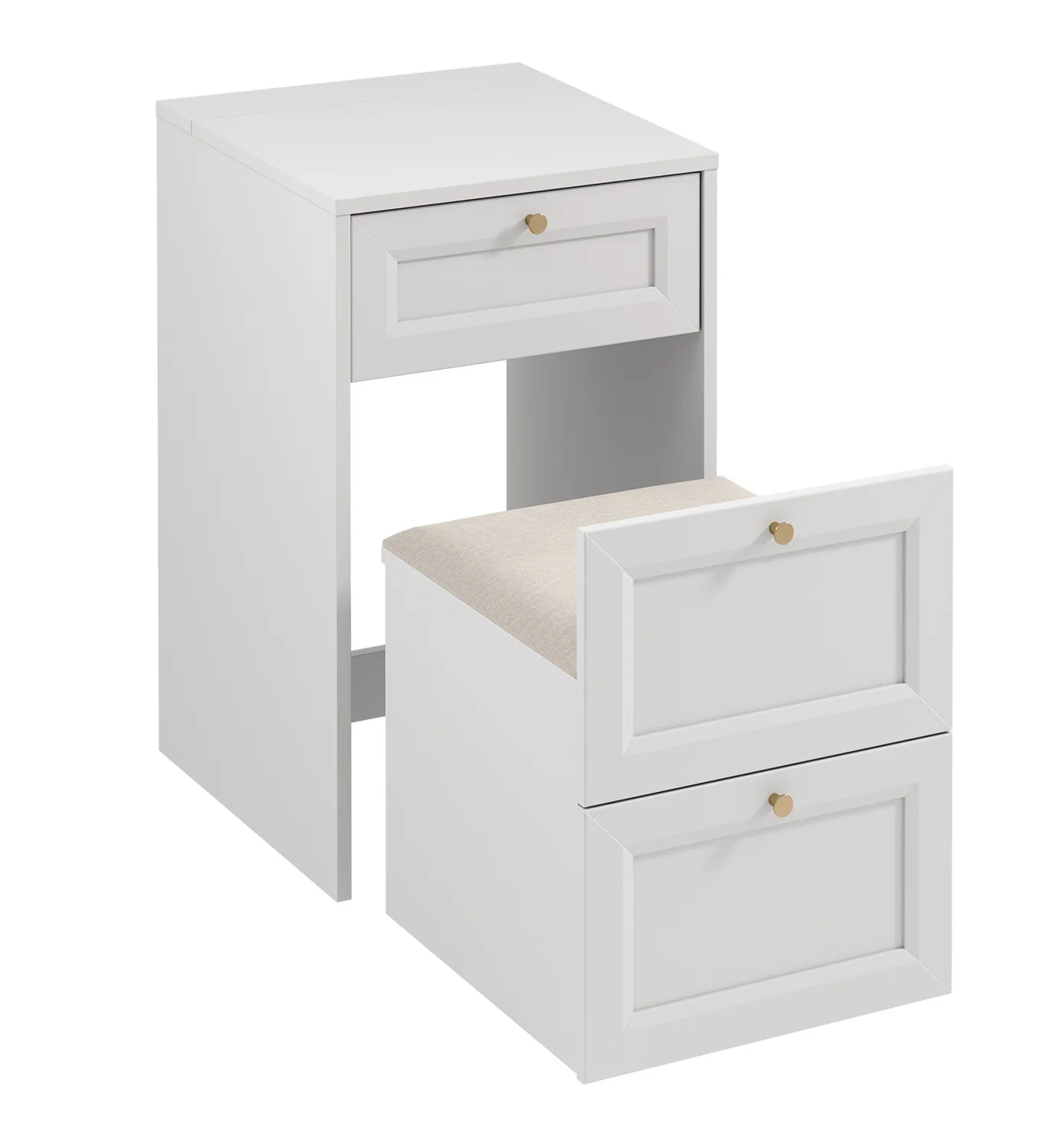 Praktičnost a styl jsou hlavními přednostmi tohoto toaletního stolku, který poskytuje dostatek prostoru pro uložení různých drobností a doplňků, díky čemuž získáte ve svém interiéru pořádek.