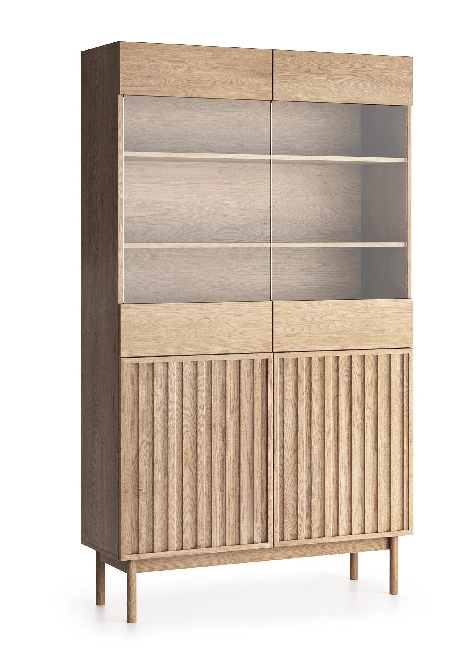 Kolekce stojí na vysokých dřevěných nožkách,